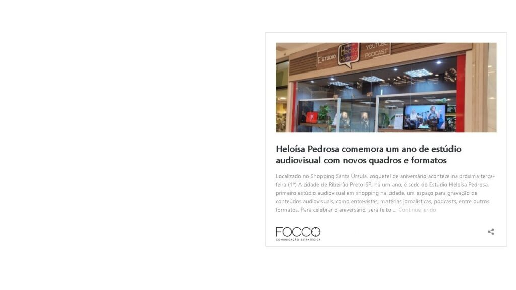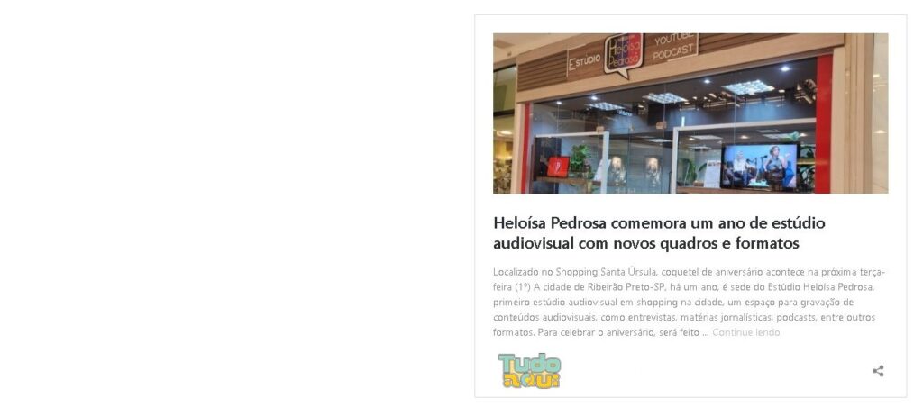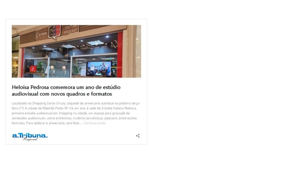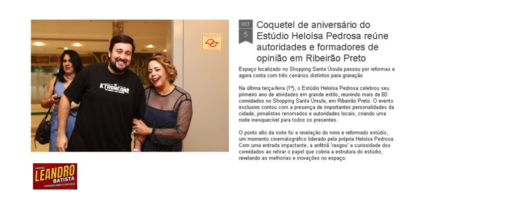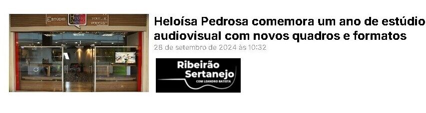 A trajetória do Estúdio Heloísa Pedrosa, desde sua inauguração até a celebração do primeiro aniversário, tem sido amplamente acompanhada e destacada pelos principais veículos de comunicação de Ribeirão Preto e região.